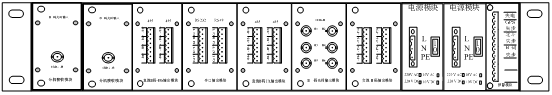 每台机箱后面板配有2块输入模块,2块电源模块,10块输出模块和1个告警模块;