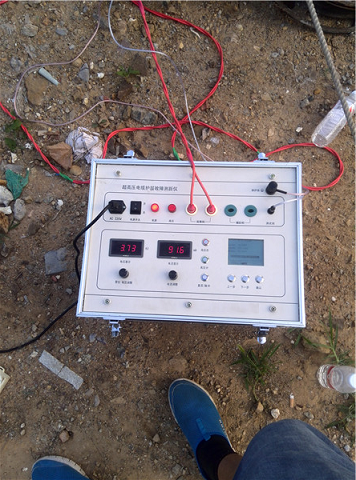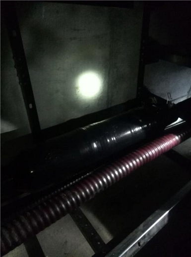 经过测距设备检测故障位置距离测试端30米。设备再次加压,在故障位置明显看到有燃弧现象,定位完毕。