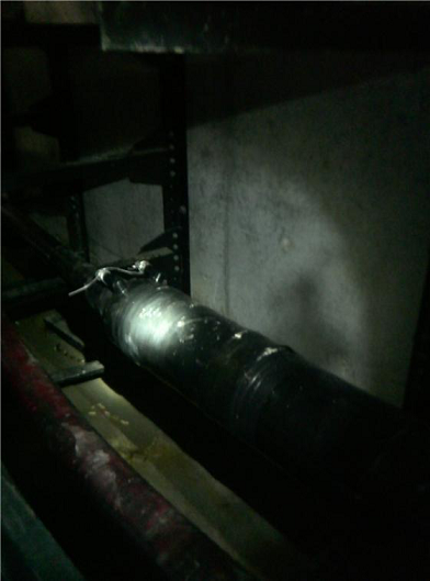 工作人员刮掉半导体层继续耐压测试,合格,确定故障就在此处后进行了包扎处理。