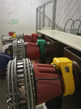 9月17日下午到达**能源公司,这个测温系统需要安装的有180个测温点,2台RM-C3000G接收主机和 1台RM-C3000E接收主机。本次工程订货安装非常紧急,客户要求所有测温点必须在19日0时前安装完成。其中有5个柜子特别紧急必须在17日21时点之前必须完成。根据客户要求进行柜号排列,并做记录,然后按顺序找出10KV配电室这5个开关柜对应的测温点序号进行安装。小车推出后发现触头为倒锥形,合金片收紧困难,温度探头难以安装,施工人员克服种种困难,保质保量并提前2小时完成,主机全部接收到已安装探头的温度数据。
