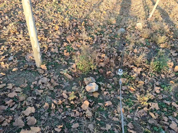 2、使用高压发生器打压进行放电定点,使用轮距仪进行距离测量在施工场区找到故障点,如图所示